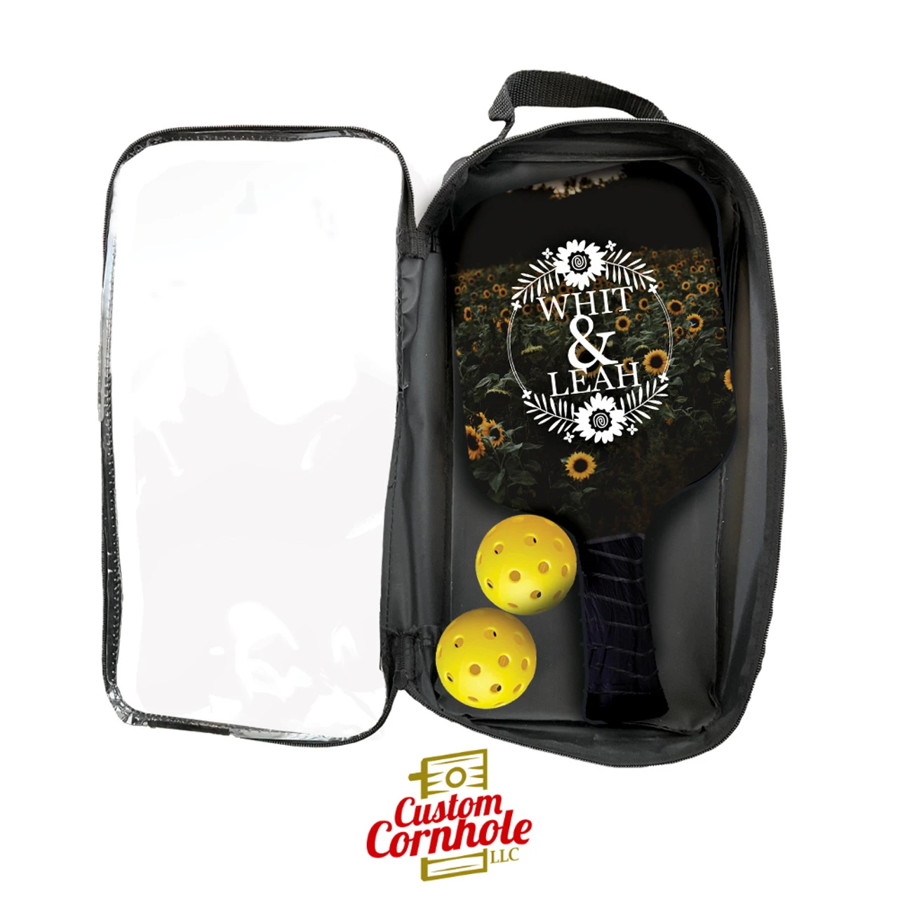 Custom Circle Flower Bride And Groom Pickleball Paddle Set