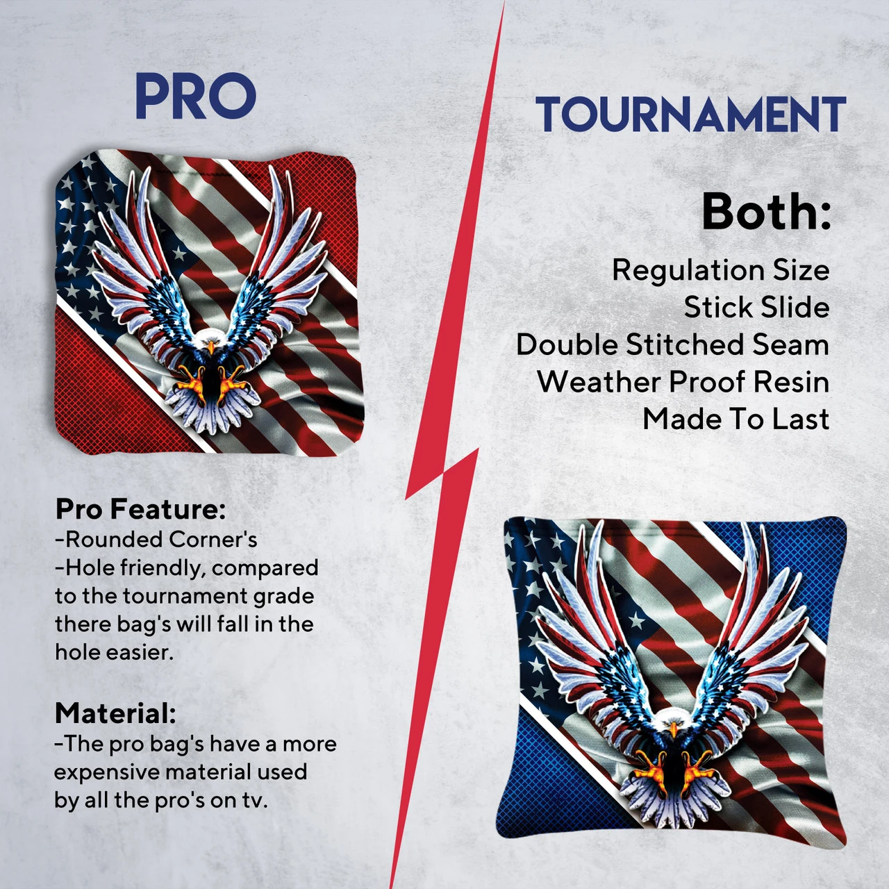 Professional Regulation Cornhole Bags’ dual-sided material construction advances playing strategy and control, allowing you to grab or glide on the board. With various graphic options available, sets can be mixed and matched to fit any style.