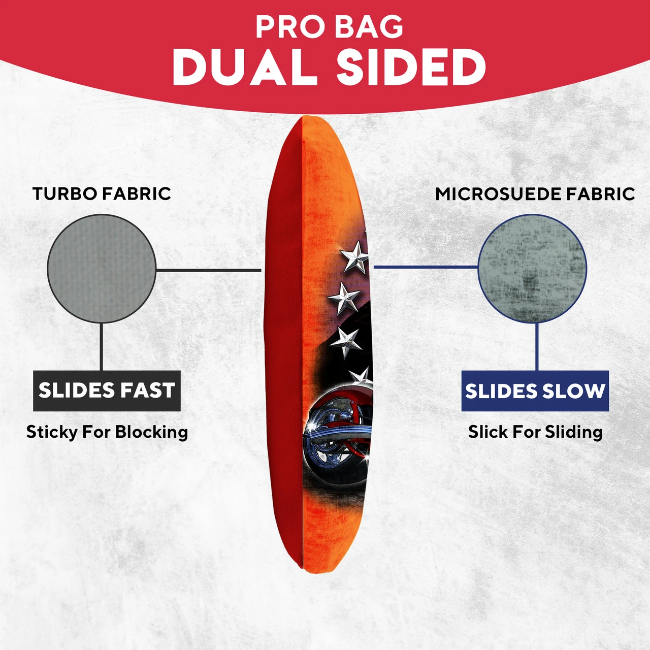 Professional Regulation Cornhole Bags’ dual-sided material construction advances playing strategy and control, allowing you to grab or glide on the board. With various graphic options available, sets can be mixed and matched to fit any style.