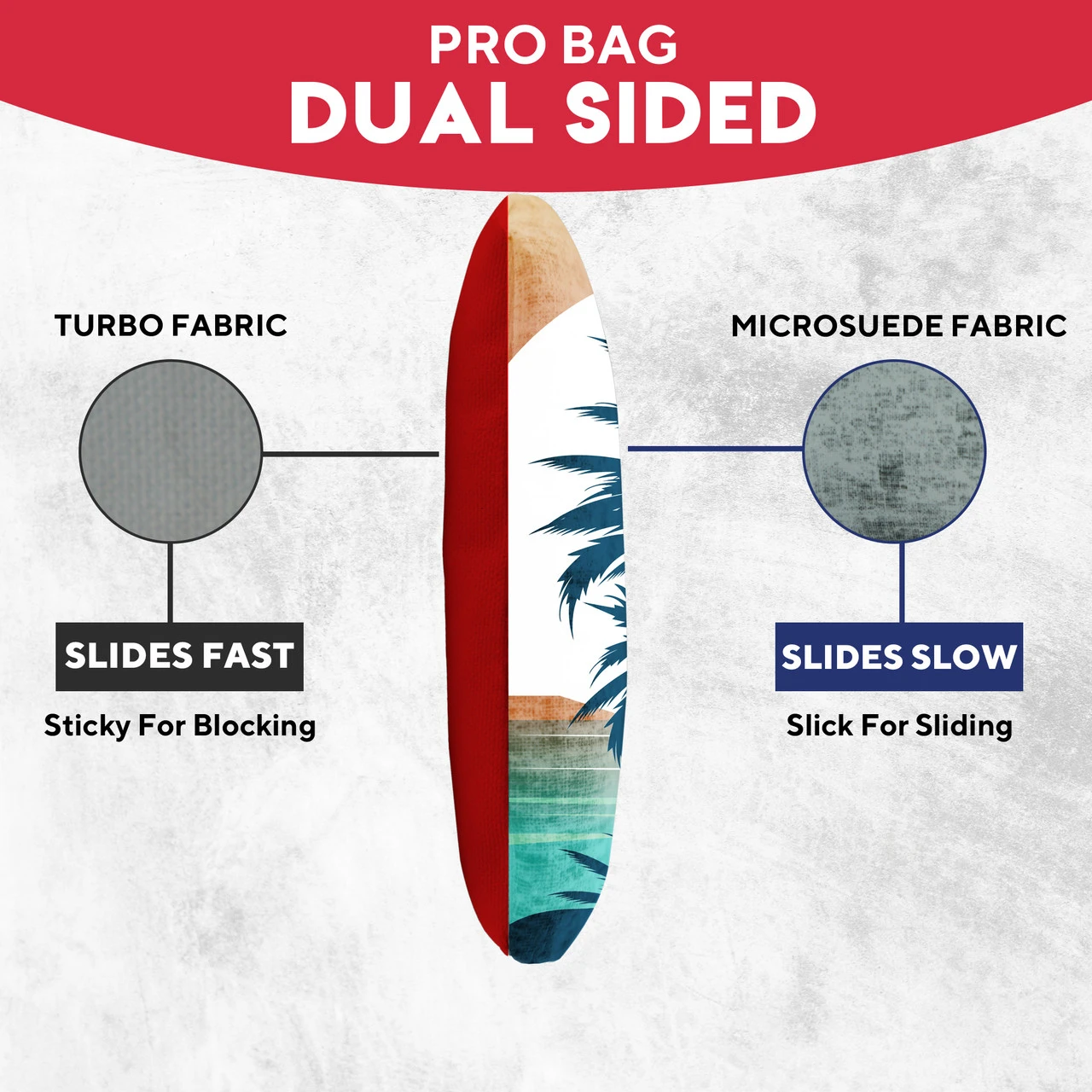 Professional Regulation Cornhole Bags’ dual-sided material construction advances playing strategy and control, allowing you to grab or glide on the board. With various graphic options available, sets can be mixed and matched to fit any style.